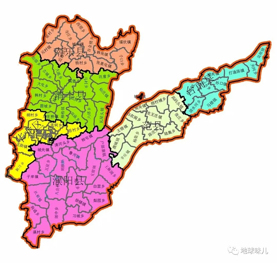 范县所属的河南濮阳地图,一点跨到了山东