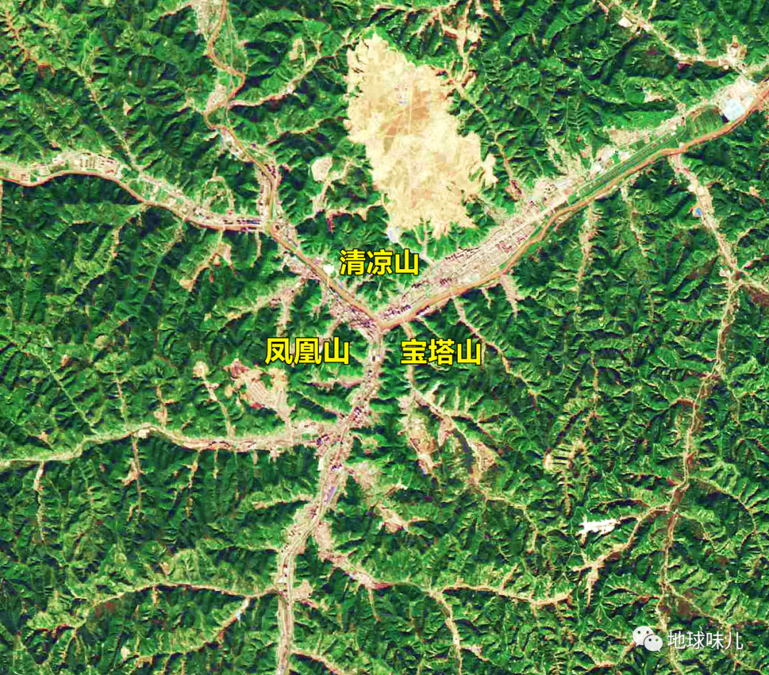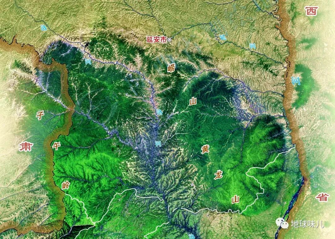 “三山鼎立,两河相交”,说的便是延安的地形,三山指的是宝塔山、凤凰山、清凉山,两河指的是延河、汾河,三山两河的地貌呈现出“Y”字形的布局。整个区域千沟万壑,密密麻麻的黄土沟,从地图上看,像极了树叶的纹路,素有塞上咽喉,军事重镇的美称。