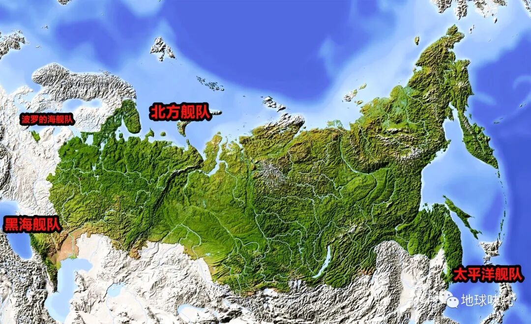 俄罗斯西部有波罗的海出海口、东部有太平洋出海口,南部有黑海出海口,北有白海出海口。为了保护这些并不直接相连的海域,俄罗斯不得不分兵驻守,设立了在白海、大西洋活动的北方舰队,驻守海参崴的太平洋舰队,控制黑海以及附近土耳其海峡的黑海舰队以及巡弋在波罗的海的波罗的海舰队共四支大型舰队。
