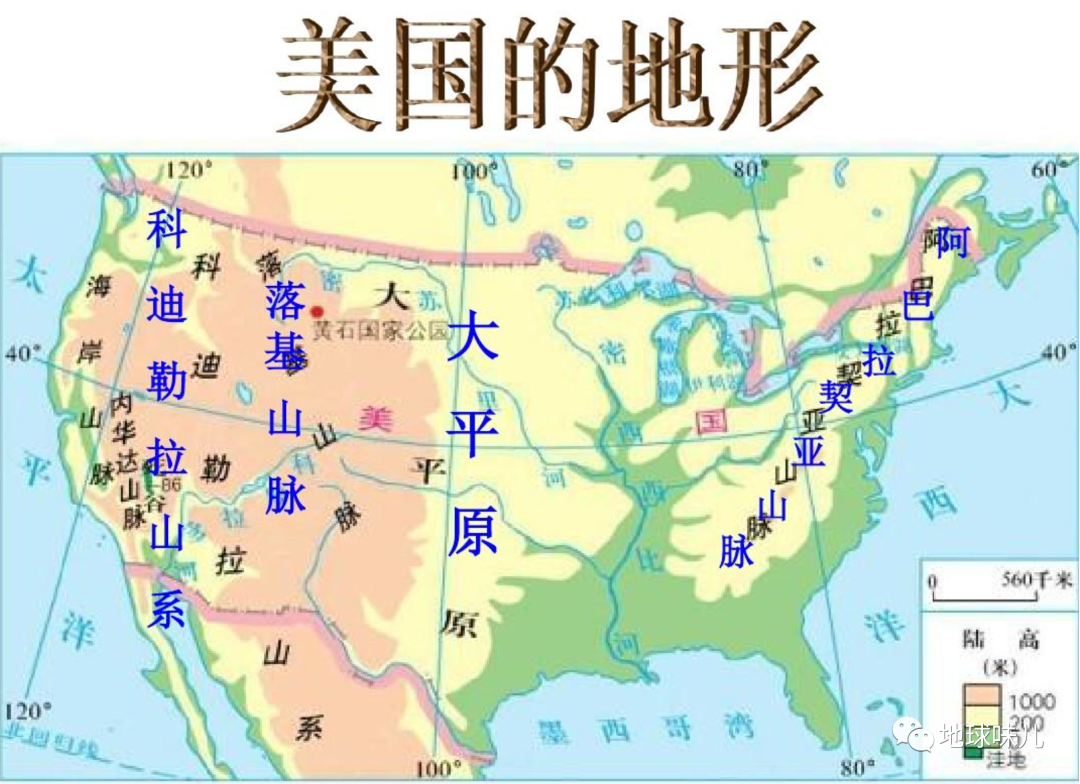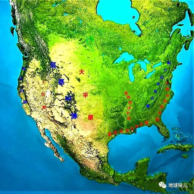 美国的地形种类非常丰富,该有的都有,单拎出来看,都挺好的,可组合起来后,却显得非常别扭。中国的高原、山脉,基本是环平原分布的,从东北逆时针看,外圈有长白山脉、大兴安岭、蒙古高原、阿尔泰山脉、青藏高原、喜马拉雅山脉,内圈有祁连山脉、黄土高原、横断山脉、云贵高原,内外两层护卫内地的平原丘陵区。