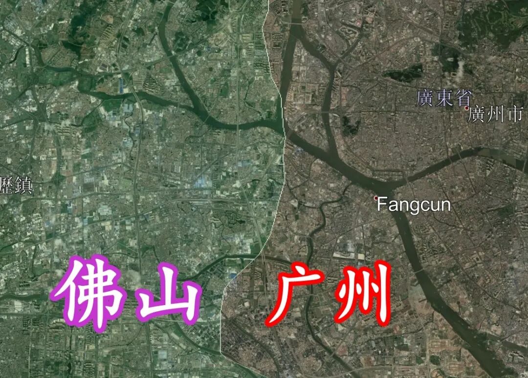 前面提到的城市已经很近了,但好歹还隔着点东西,有两座城市,竟然是零距离接触,这就是广州和佛山。