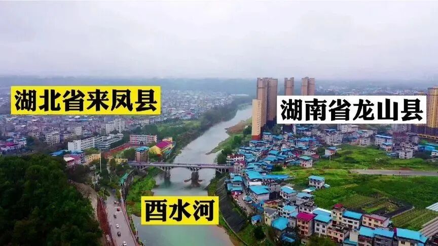 其实,类似于府谷、保德的例子还有,比如湖北来凤县城与湖南龙山县城,也是中间隔了一条酉水河,河上有长度约600米的湘鄂情大桥。一桥跨两省,基本就是府谷、保德的翻版。