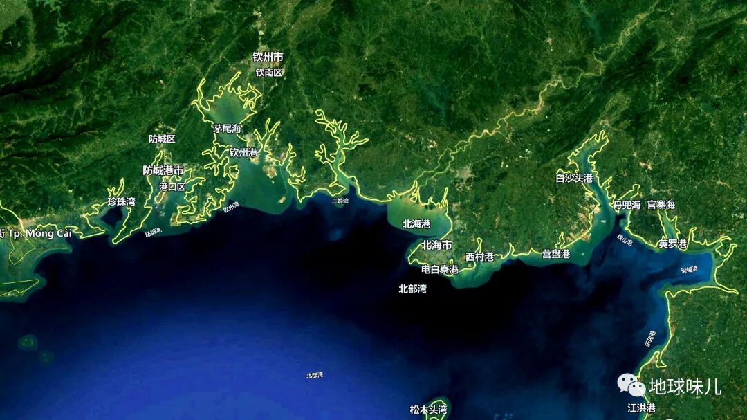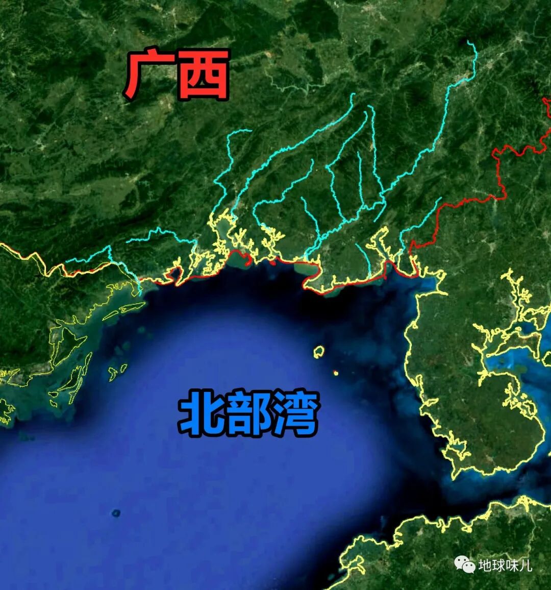 广西海岸线长的原因,第一个是地形,第二个是河流。