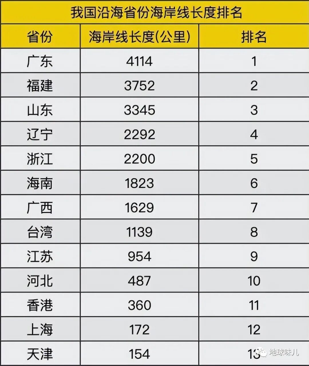 我国目前共有14个沿海省级行政区,从北往南有辽宁、天津、河北、山东、江苏、上海、浙江、福建、台湾、广东、广西、香港、澳门和海南,其中,广东的海岸线长度最长,为4114公里,接下来是福建和山东,分别为3752公里和3345公里,之后依次为辽宁、浙江、海南、广西、台湾、江苏、河北、香港、上海、天津和澳门。可见,广西的海岸线长度在全国排名第七,超过了台湾、江苏和河北三个省份。