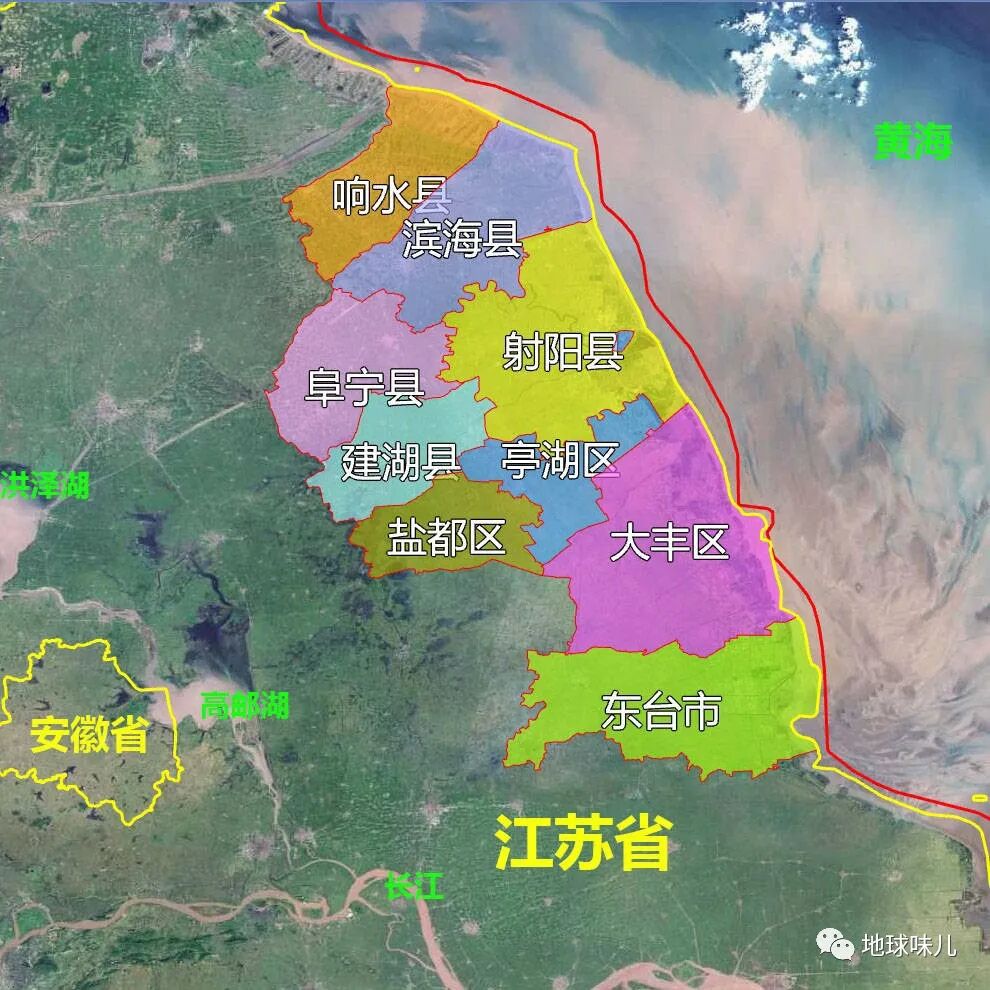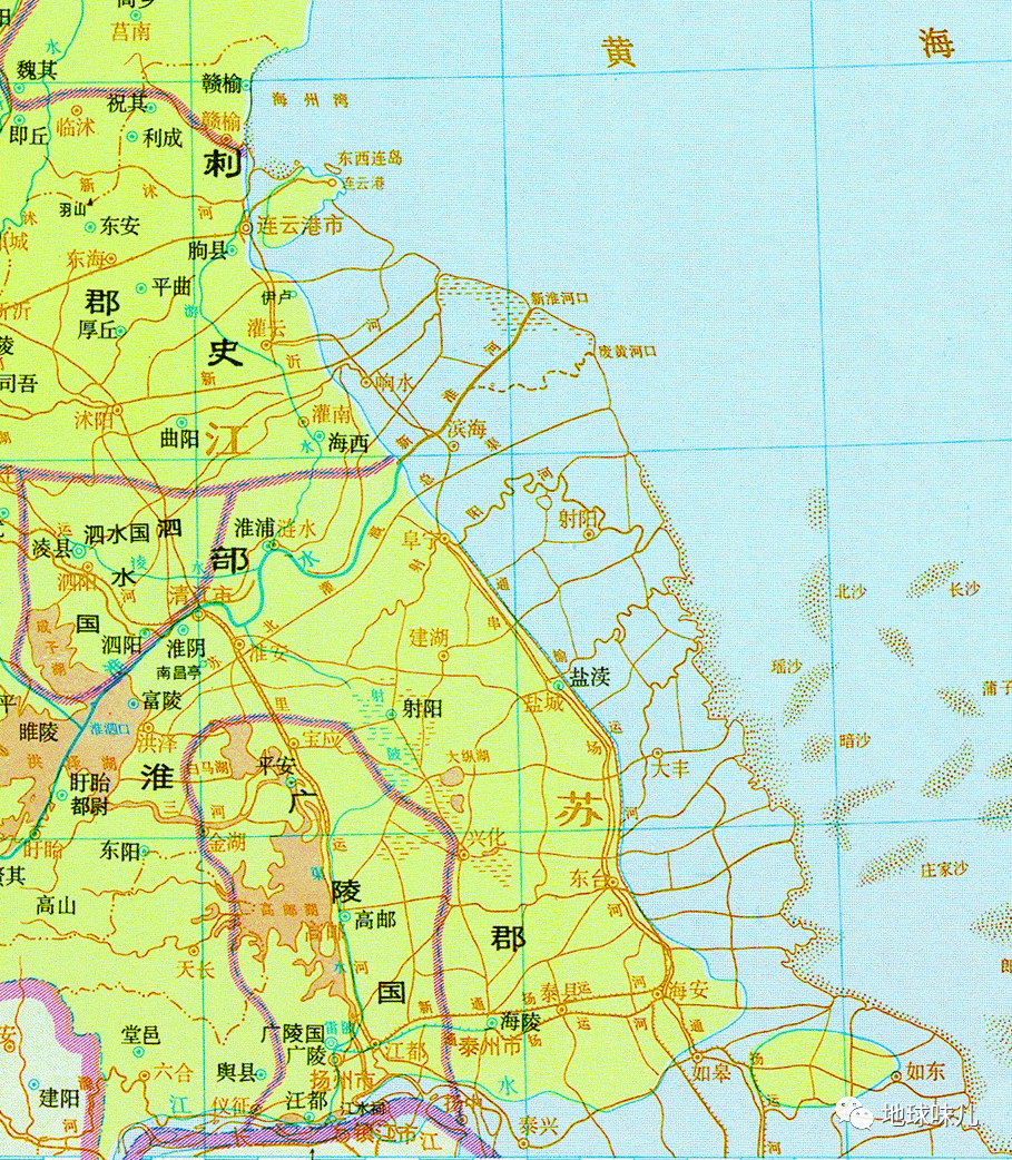 上面是一张西汉时期的盐城周边地图,可见现在的阜宁、盐城、东台一线以东在当时都还是大海,现在全部成了陆地。