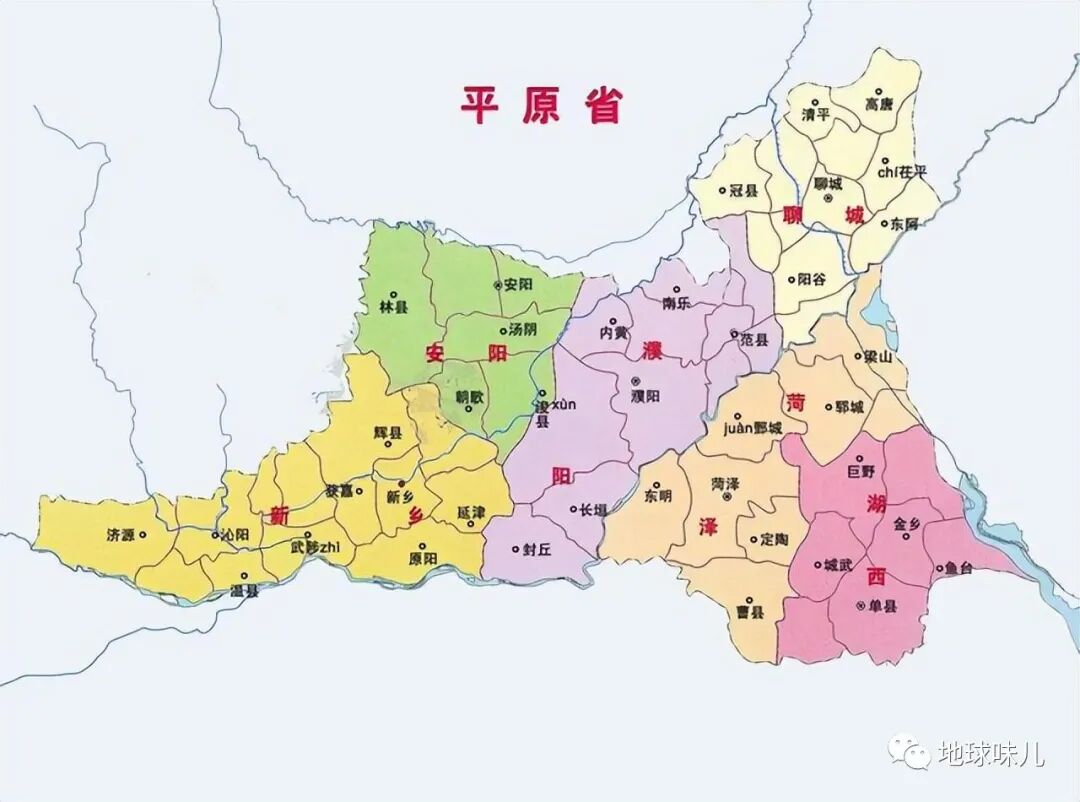 因黄河流经河南、河北、山东三省交界区,如果让三个省一起治理,需要统筹各方,调配各省的资源,很不方便管理,鉴于这样的原因,还是在这一片重新设立一个省份比较合适,于是把河南省的黄河以北地区、河北省最南部的5个县、山东省的西部划了出去,组成了平原省。