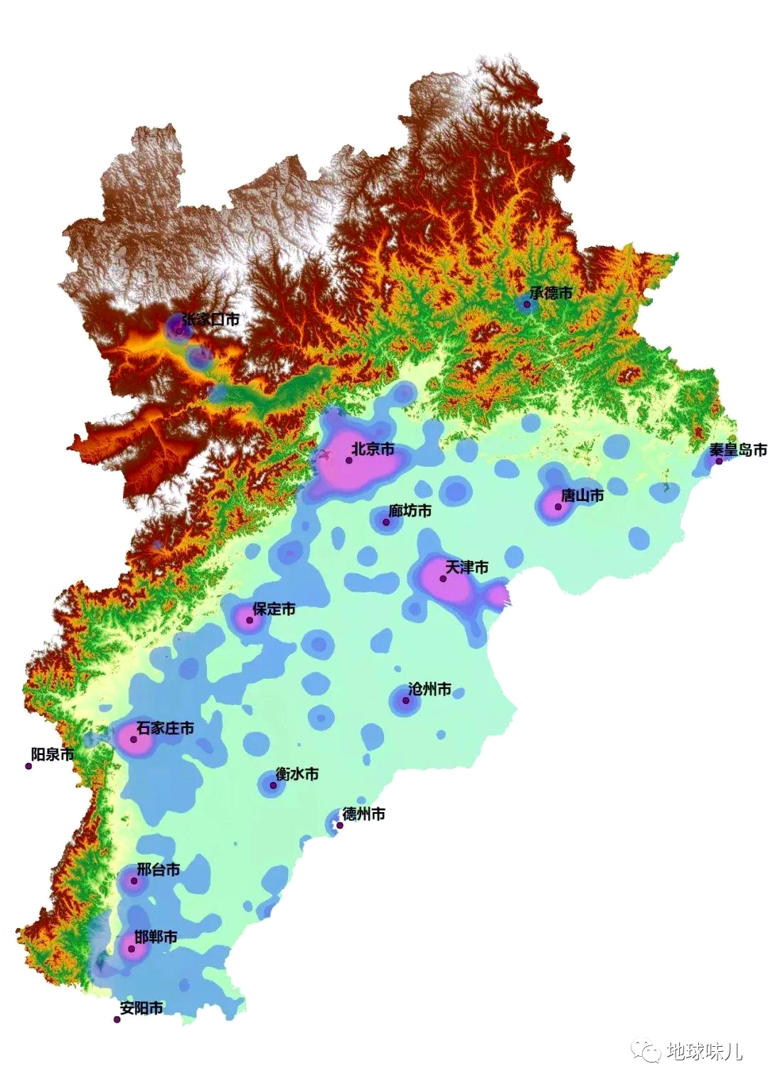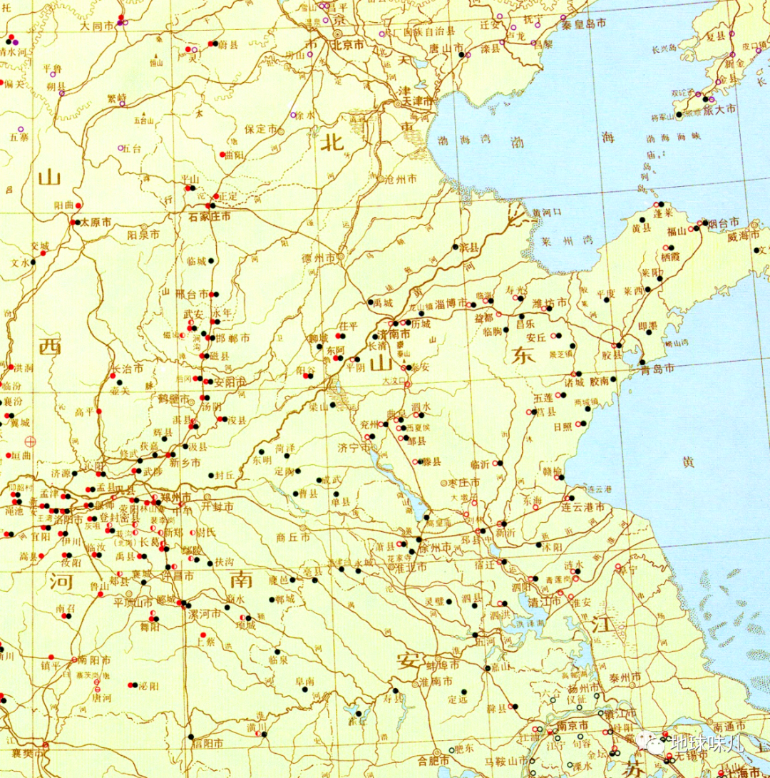 从这张图上我们还可以发现,河北平原的大城市大部分都位于太行山东麓,比如北京、保定、石家庄、邢台、邯郸、安阳、鹤壁、新乡、焦作等,这是什么原因呢?