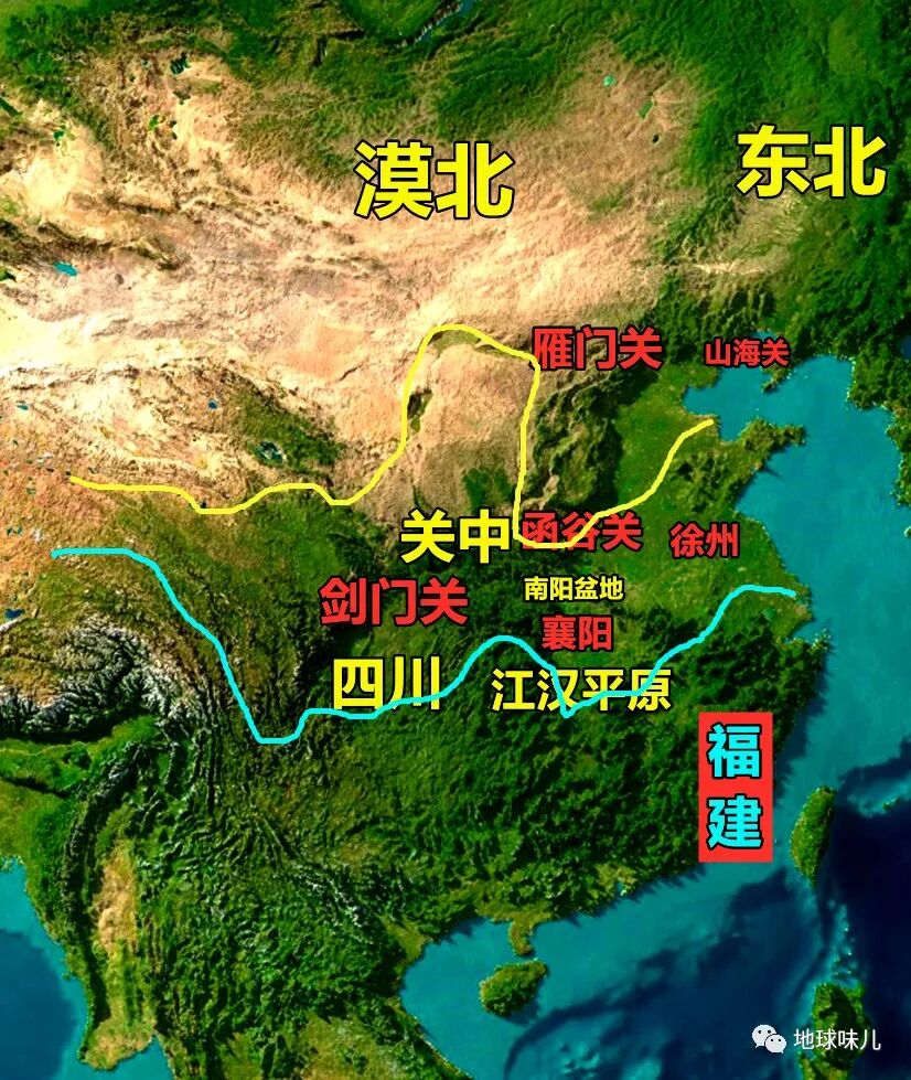 关中与蜀中之间的剑门关、关东与关中之间的函谷关、长江与黄河之间的徐州、南阳盆地与江汉平原之间的襄樊,也同样是实力对等两方之间的必争之地。