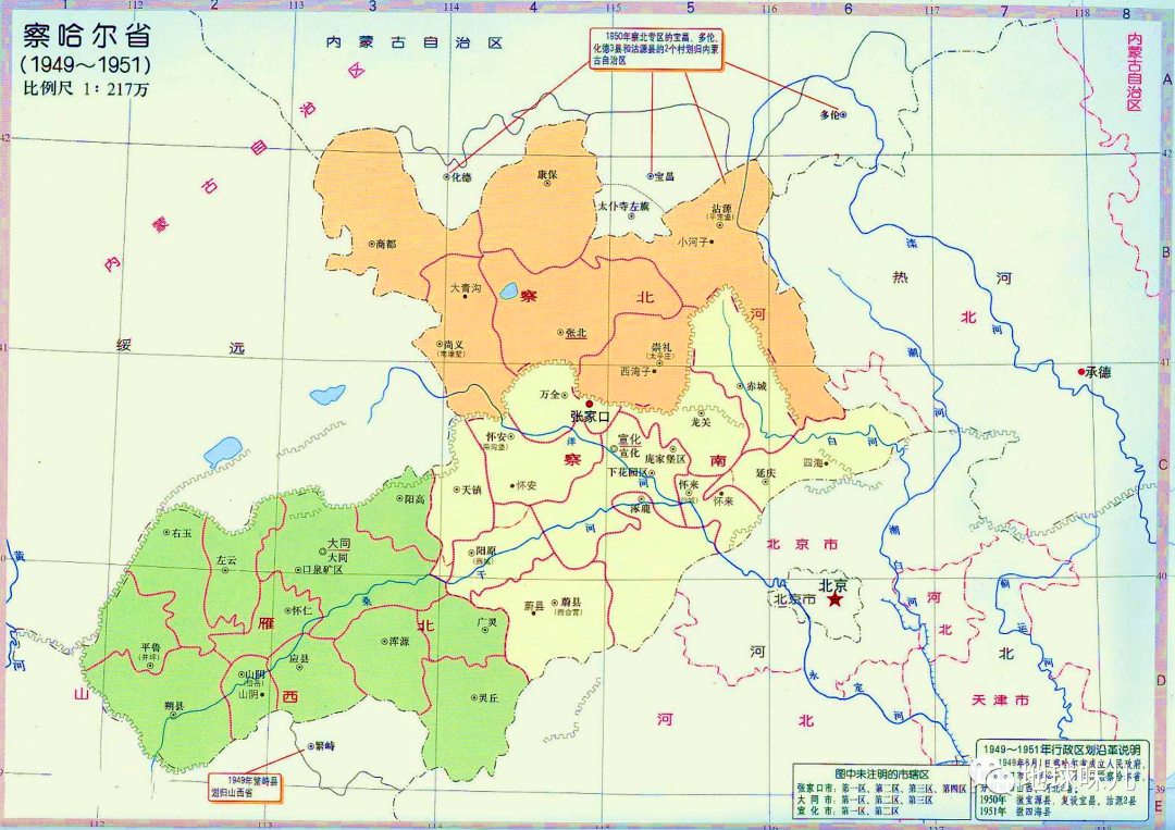 建国后察哈尔省被拆分察南、察北、雁北三个专区