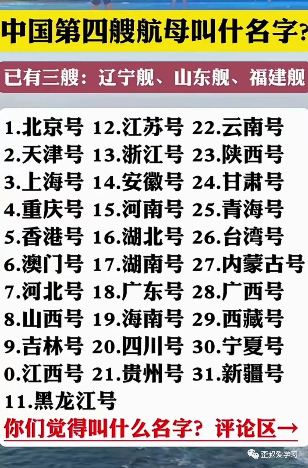 最后,大家觉得第四艘航母应该叫什么名字呢?