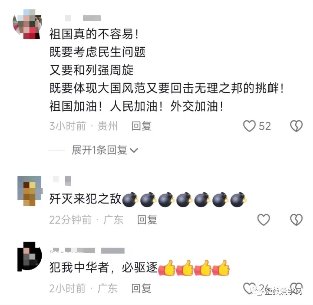 这些评论反映了我们民众对国家主权和领土完整的坚定支持。