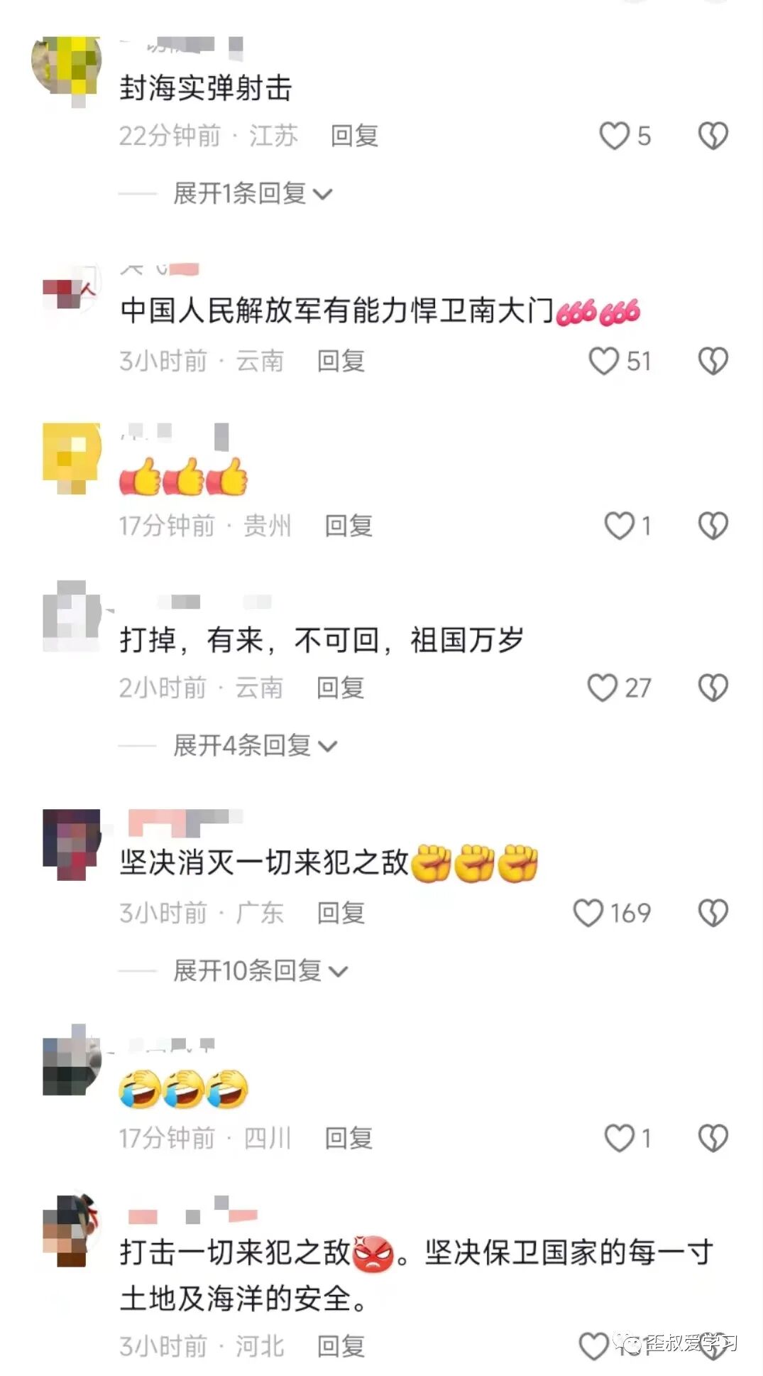中国人民解放军的行动,不仅是对外来挑衅的有力回应,更是对国家主权和领土完整的坚决捍卫。在这片祖先留下的宝贵海域,每一寸土地、每一滴水域,都承载着中华民族的尊严和坚强意志。