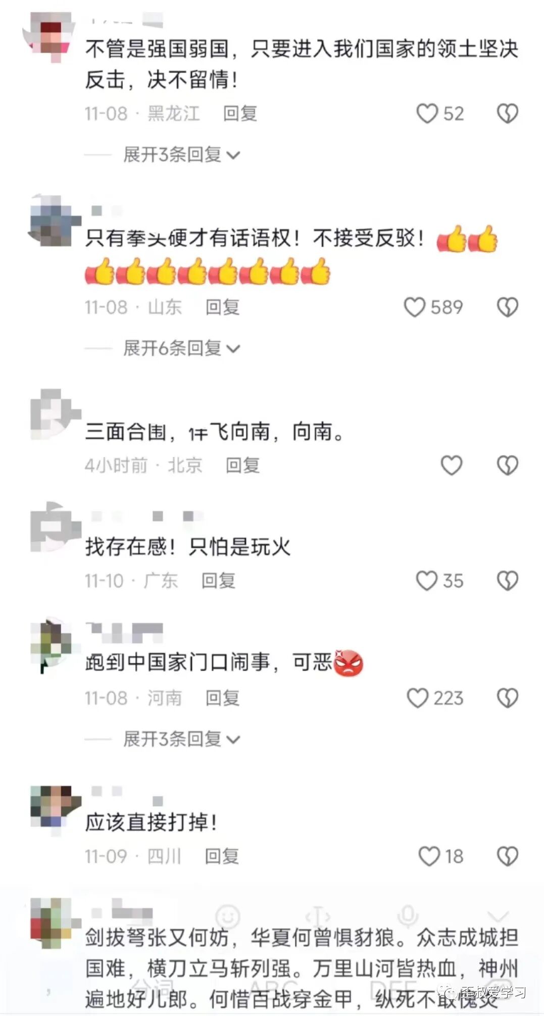 对于那些试图在我们的门口制造事端的国家,我们要发出明确的信息:中国不是一个可以轻易挑衅的国家。我们的忍耐和克制不应被误解为软弱。中国人民解放军将坚决驱赶一切来犯之敌,坚守我们的国土,保护我们的海洋,捍卫我们的尊严。