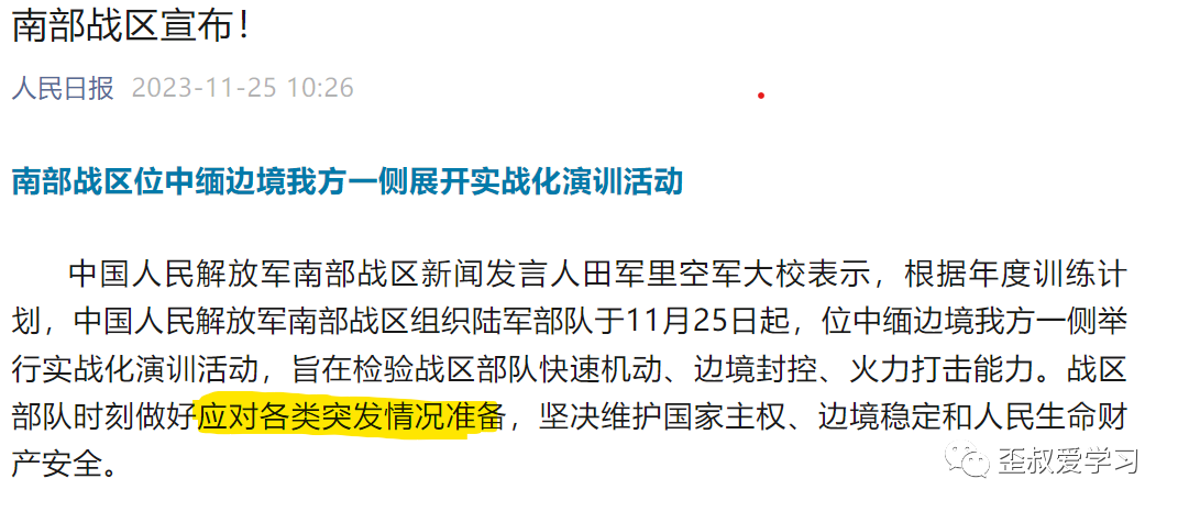 是不是表示我们国家对缅北的局势有所关注,甚至是在做一些应对的准备?