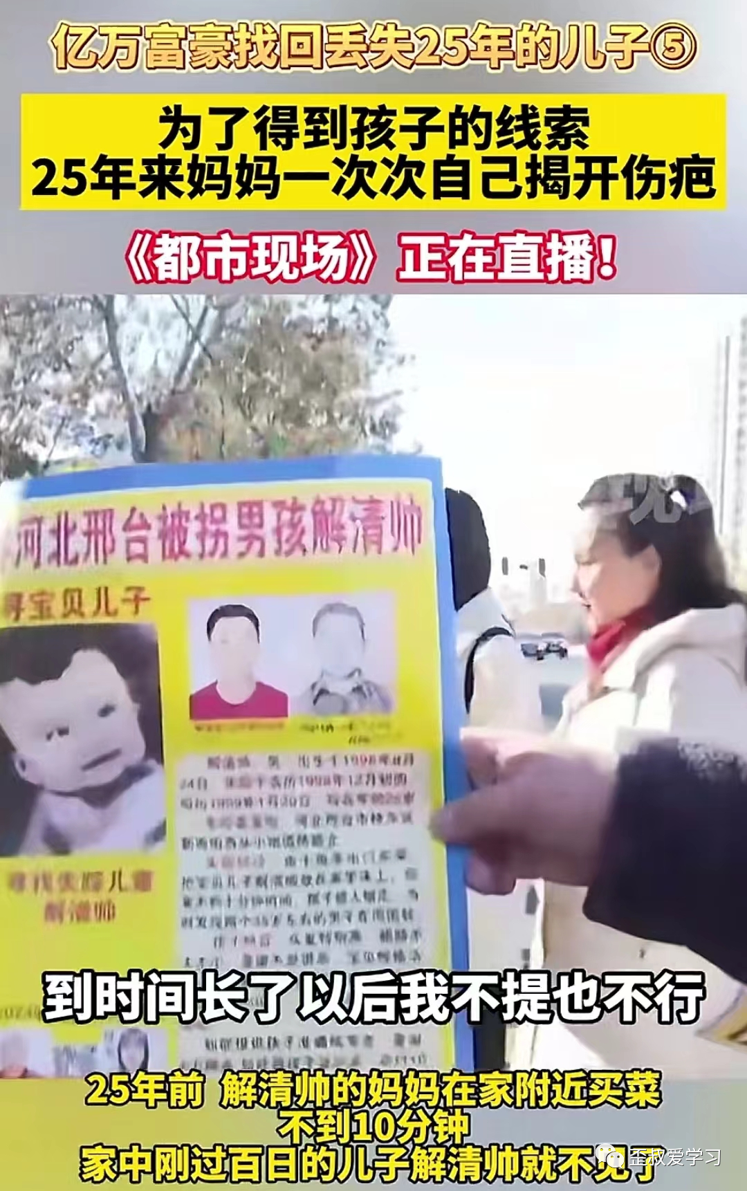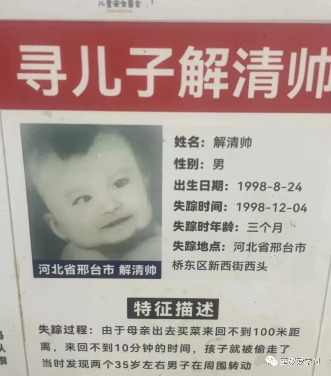 12月1日,河北邢台的亿万富翁解克锋在寻找了26年后,终于找回了被人贩子拐走的二儿子解清帅,其一直成长和居住的地方就在河北的邯郸,相隔不过几十上百公里,偏偏找了25年没有找到,这兴许也就是命。这里面是否又有熟人在后面作案呢?