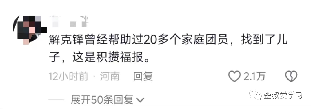 有人说寻子成功是解克锋这些年一直做善事带来的福报。