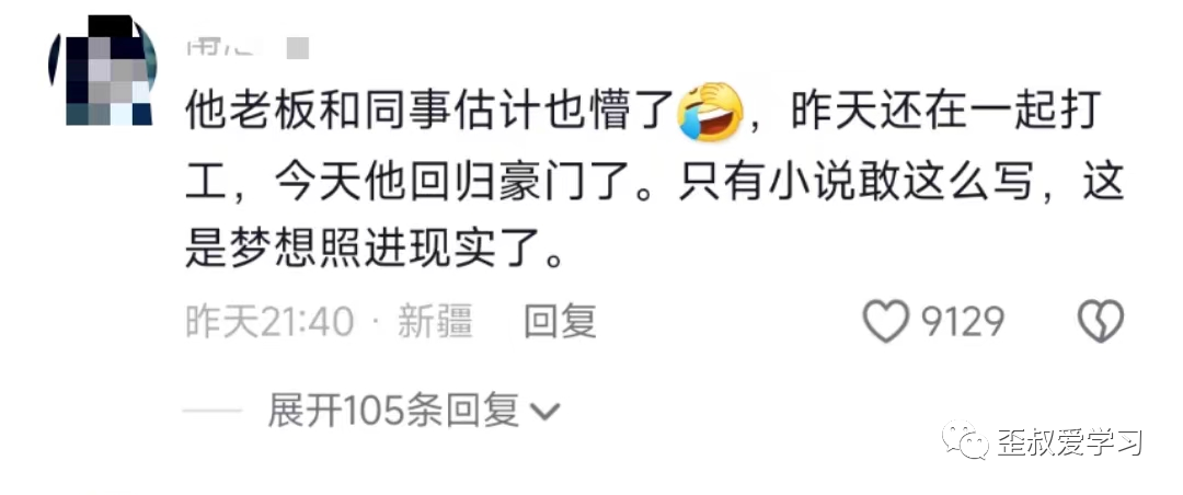 此事刷爆了全网,有人说昨天还在打工,今天回归豪门是只有小说才敢这么写,是梦想照进了现实。