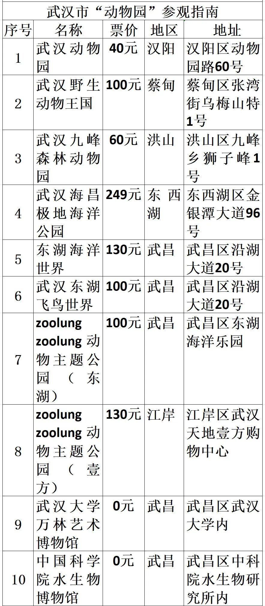 动物园是亲子的乐园,是儿童的快乐王国。可是武汉有多少“动物园”你知道吗?它们分别在哪里?实际上,除了大多数人熟知的“武汉动物园”之外,还有至少9个“动物园”。
