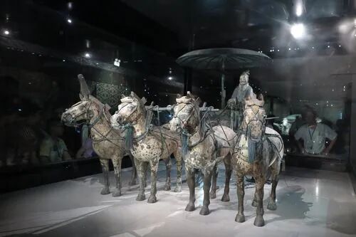 你也可以乘坐现代化的电瓶车游览各展馆之间的兵马俑坑,感受这“营中生活”的场景。一个人在机动的电瓶车上面体验古老而神奇的地下王国。