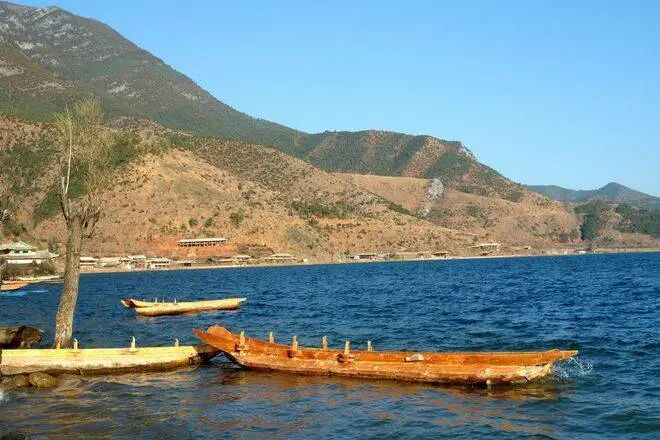 泸沽湖位于云南、四川交界处,面积约有439.7平方公里,是我国面积最大的高原湖泊。她四面环山,群峰掩映,湖水清澈绿松石般的湖面倒映着苍山通红的树木。有“边城”之称的中甸县就坐落在它的北部岸边。稍远些的地方还有一些彝族村寨,生活在这片高原湖泊四周。