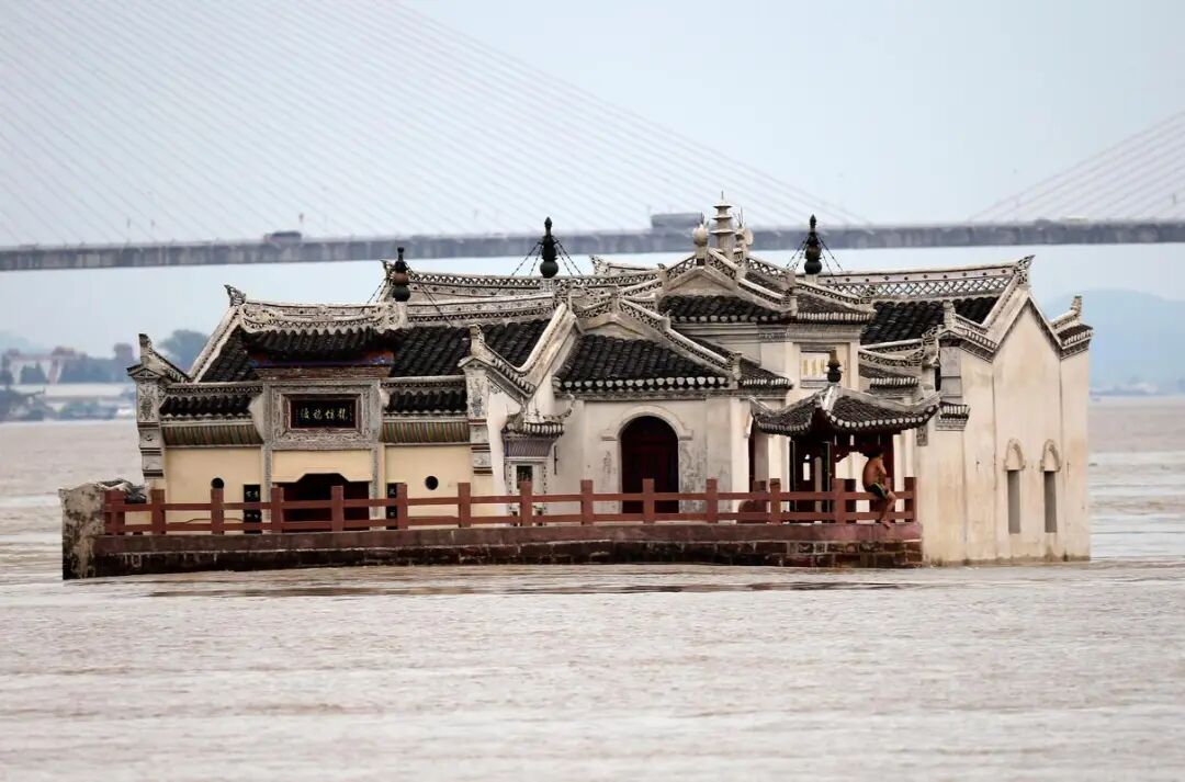 观音阁屹立江中700年,久经风霜却从未拆迁。因为这里河面最宽,江水最急,一般人很难靠近,更遑论动手拆除。它就这样栖息在江心,成为长江中最牛的“钉子户”,让人叹为观止。这座小亭何其幸运,驻足大江东去,见证沧海桑田。它以一种执着倔强的精神,抵御着时光和江水的冲刷侵蚀。即便江水漫过脚下,吞没全身,它也从未放弃,只为守望这江山社稷。