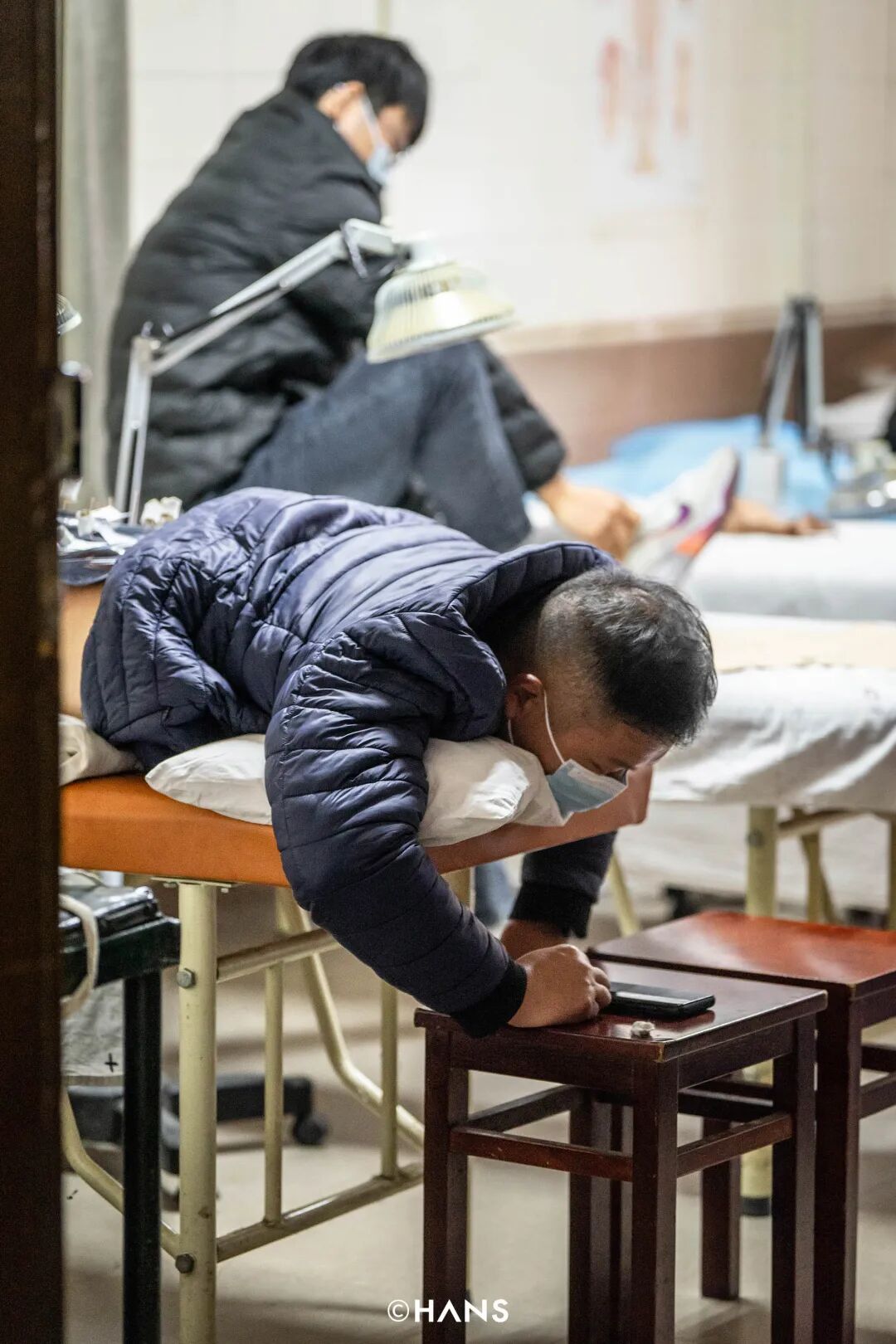 在武体医院,医生像个陀螺,又是掰大腿,又是按脚踝。跟我一样的打工人,二十几岁腰椎间盘突出。论文写到一半的博士生,低血糖没站稳,被电脑柜撞伤了腰。上个月,还有个姐姐从上海打飞的过来,三针小针刀,治好了她五年的腱鞘炎。
