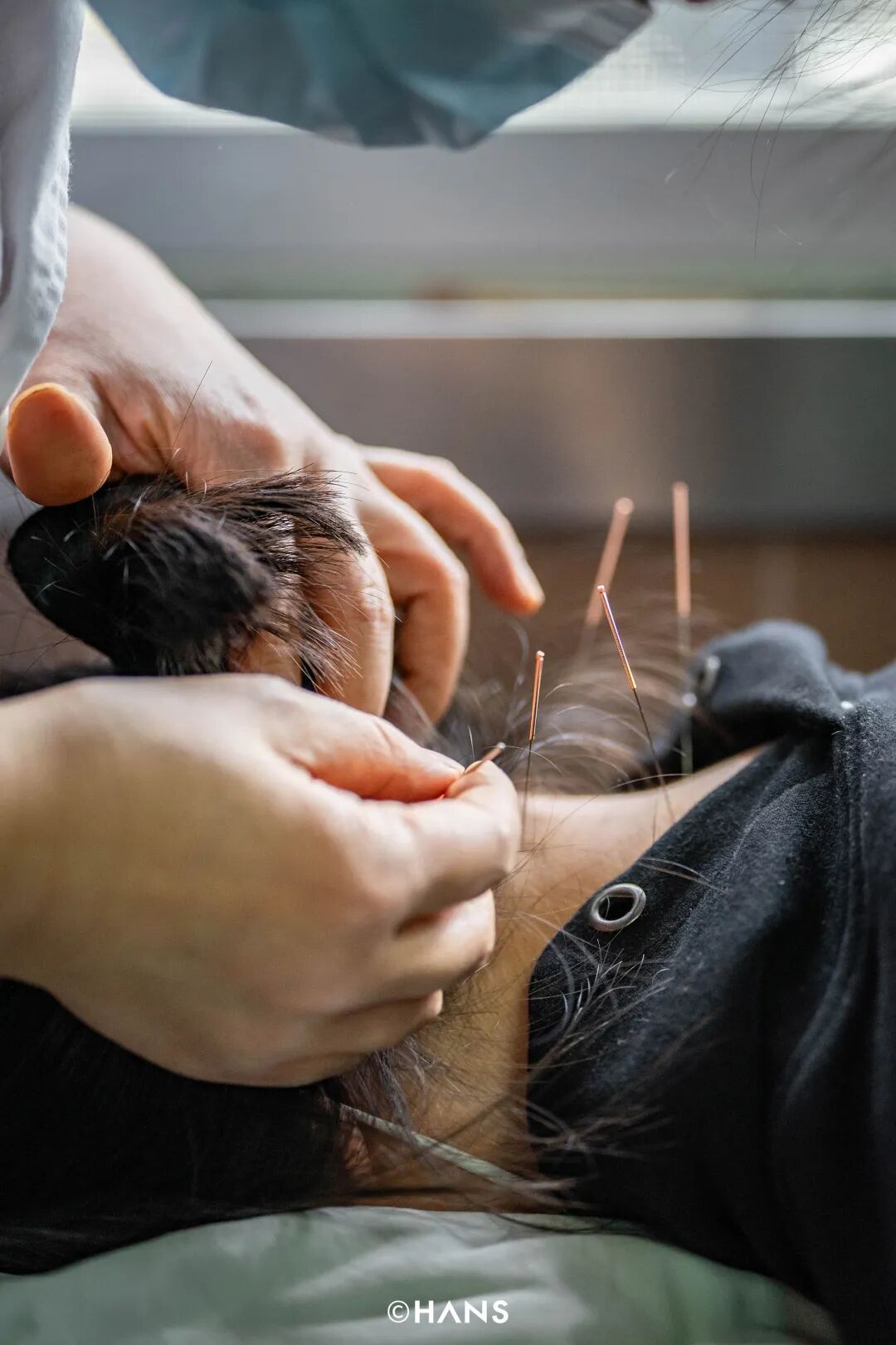 先是扎穿皮肤的刺痛,继而转化成酸胀,足足六根针,我的头活像个躺平的仙人球。