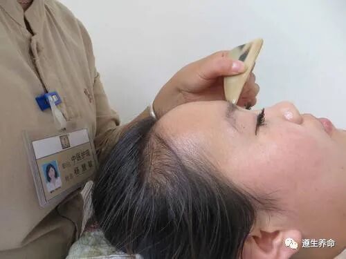 进行面部刮痧的时候,速度要慢,按压力要小,自内而外,依次按照额头区、眼周区、面颊区、口唇区、鼻区、下颌区的顺序轻轻刮拭。