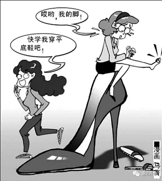 女性爱美是天生的高跟鞋更是给女性的美做出了不小的贡献,但也给你的骨骼健康带来不小的麻烦。正常情况下,脚部有三个受力点:第一、第五个脚趾和脚跟。而穿高跟鞋时,身体前倾,重心前移,人体重量几乎都落在前两点,这会引起上半身的脊椎问题。