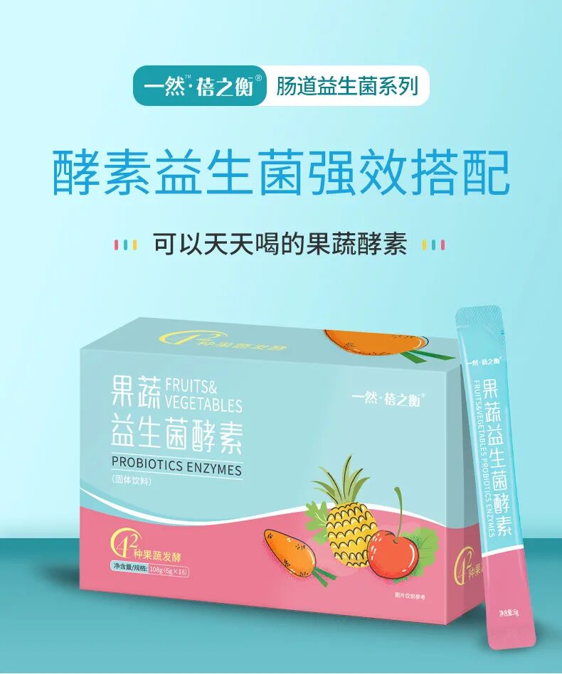 天然果蔬酵素+益生菌的黄金组合,排补结合,完美搭配。