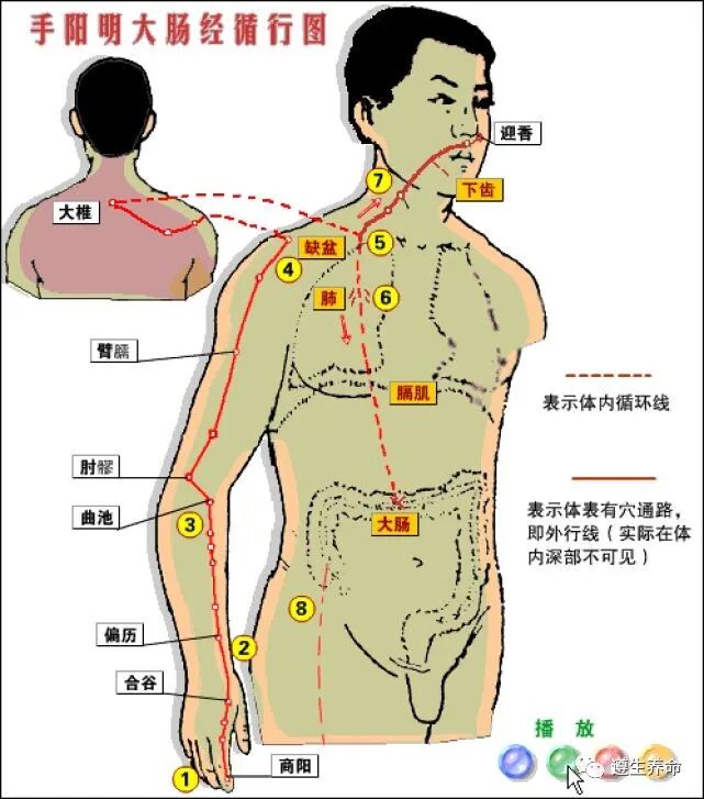 3、排毒养颜:大肠经通畅能有效地让大肠发挥其功能,加强排毒养颜的效果。当大肠及时排出体内堆积的废物之后,你的皮肤会白里透红。