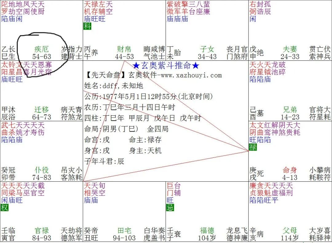 这种命理预测方法是集星象学与易经合参的方法,紫微斗数用天上的星宿作为代码,这些星宿除了14颗主星外,有甲级星和乙级星,共107颗,由紫微斗领头,称为“紫微斗数”。盘中天干地支的不同组合又提供了用“易经”于星相学对应的详细解读。紫微斗数既有道家宇宙观的神秘,也包含社会环境和人际关系,在中国的神秘文化中地位颇高,是“五大神数”之首,号称“天下第一神数”。我们借此来进行疾病的预测,和制定“治未病”的方案是最好的助手,应该说也是我们中医“特色诊疗”的一部分。如下图: