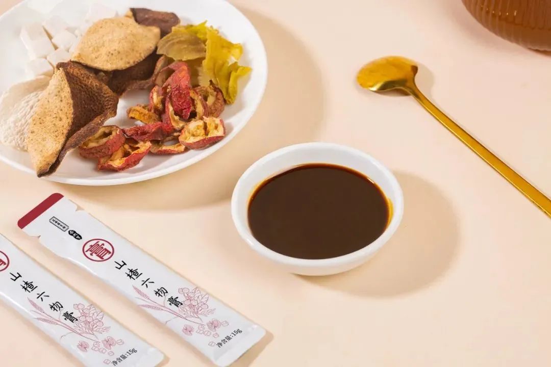 这款山楂六物膏,是用君药山楂,搭配麦芽、陈皮、鸡内金、山药、茯