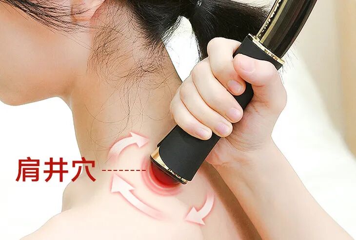比如平时你肩颈难受,可以用它多按按肩膀两侧的肩井穴。