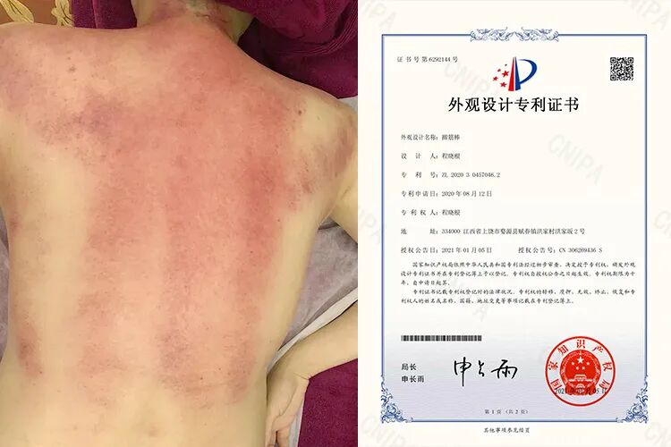 有外观专利认证,不仅出痧快,你简直不敢相信,整个背部都刮出痧,也就用了十来分钟,驱逐湿寒的效率贼高。(外观专利:ZL202030457046.2)