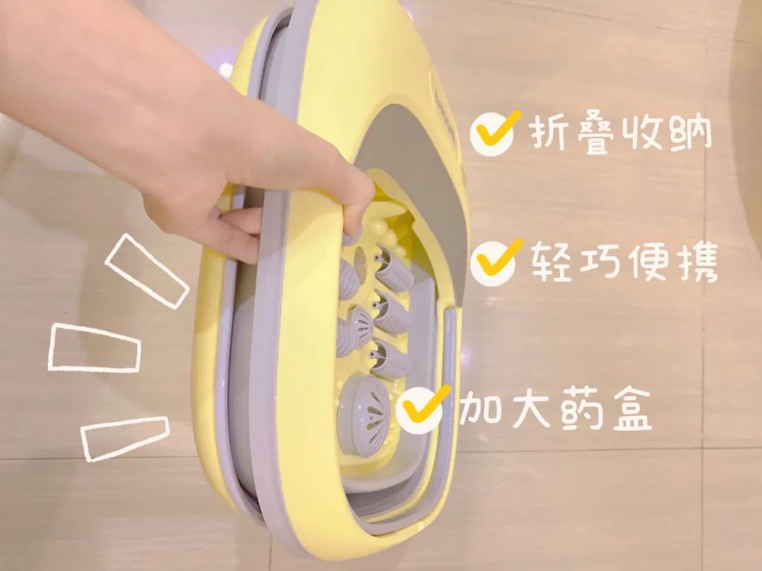 为了配合这部分朋友的泡脚习惯,朋森的折叠足浴盆单独做了一个网格药盒设计。