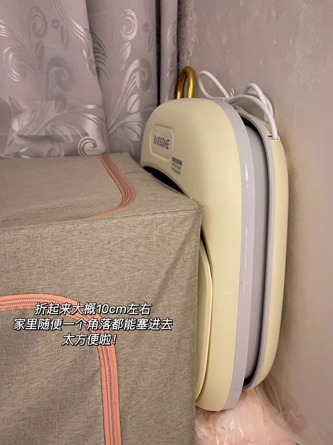 收纳的时候可以把电线绕在桶身边边,折叠的时候就会把电线也藏了起来,干干净净的。