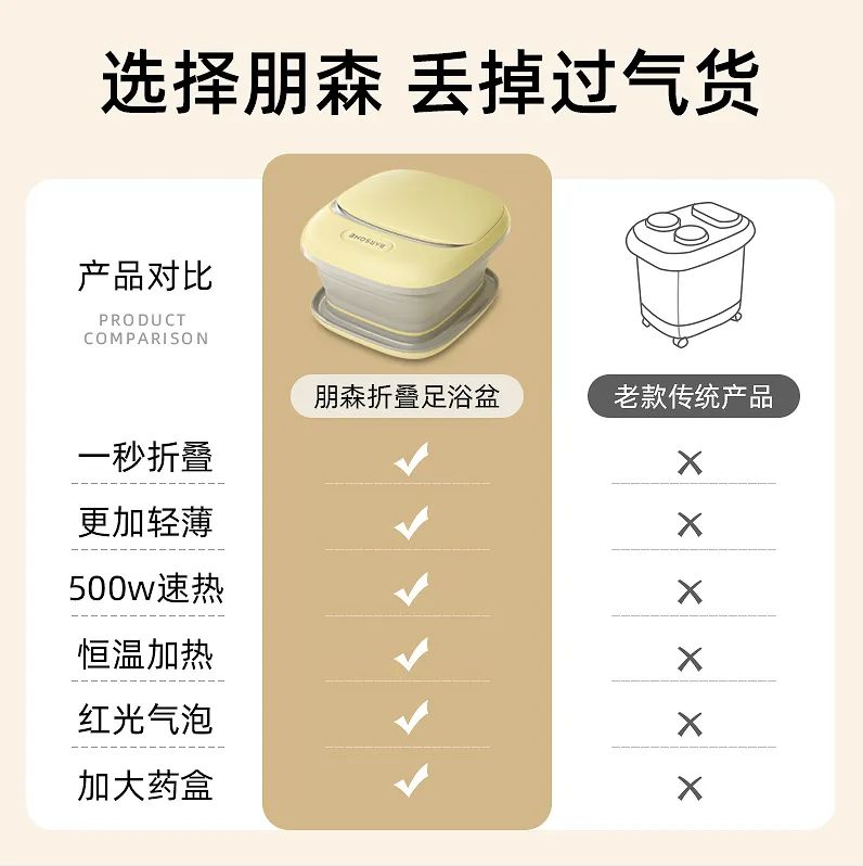 跟传统的足浴盆对比来说,朋森使用起来真的太省事了!