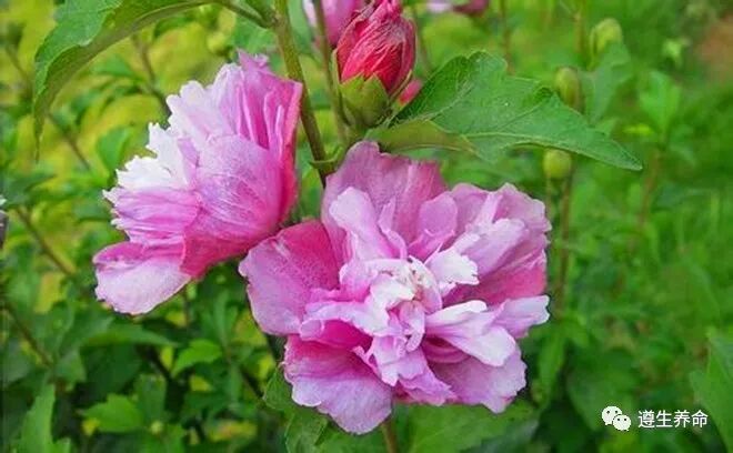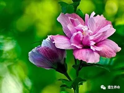 此外,木槿还有其他妙用。民间常将木槿栽植在自家篱院或厕所旁,盖因木槿花开之际,清香缭绕,可以除臭除晦气。木槿花、叶中含有肥皂草甙、肥皂草素、异牡荆素、皂甙、肌醇等,具有杀菌祛污之效,古往今来民间常用做天然洗发液。尤其是女子在七夕节前以槿花泡水洗濯,还有讨巧讨吉利之意。现在人们也用槿叶槿花制作洗发水、护发液,不仅能祛除头部的油污和皮屑,还能给头发提供营养,改善头发品质,更重要的还能清热解毒,治疗热痱、疮疖、皮癣等。