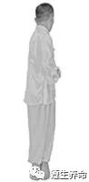 1.调身:两脚并拢,自然站立,目视前方。双臂自然下垂于体侧,手掌朝内。躯干及头颈部保持中正,轻闭双唇,舌尖轻贴上腭,眉心舒展,下颌微收,似笑非笑。