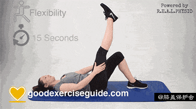 仰卧于地面,慢慢抬高患肢体,感觉腿后面肌肉被拉伸,维持动作15秒。