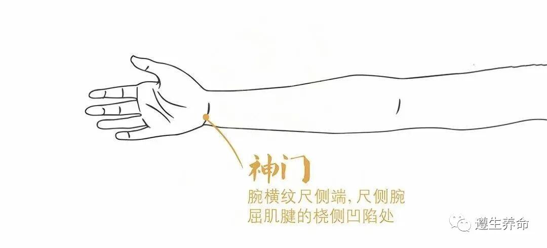 神门穴是手少阴心经的穴位之一,位于腕部,腕掌侧横纹尺侧端,尺侧腕屈肌腱的桡侧凹陷处。