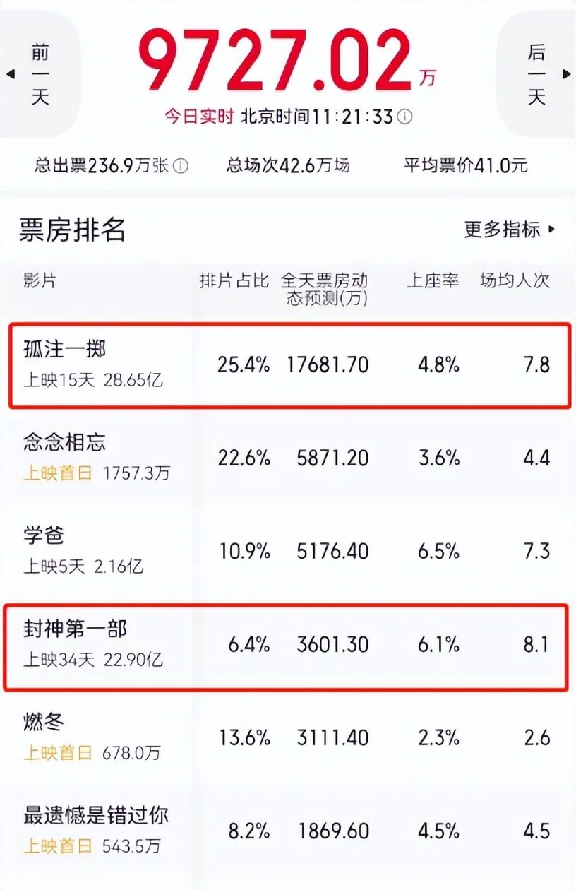 暑期档最后一波热度已经逐渐褪去,《封神第一部》上映一个多月票房差不多固定在20亿出头,《孤注一掷》半个月的时间直接猛冲到28亿,甚至还在向30亿大关进发。