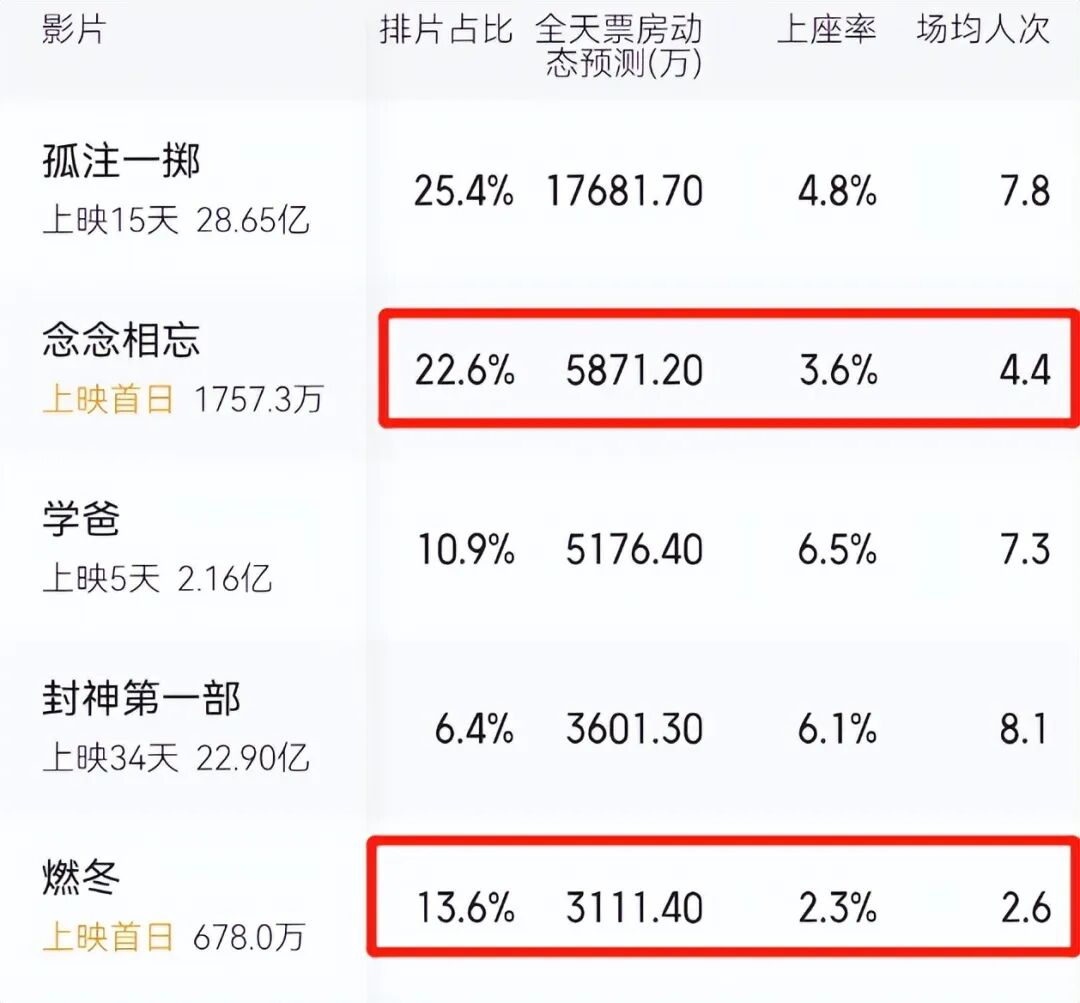 无论是排片、上座率还是场均人次竟然都被《念念相忘》吊打。