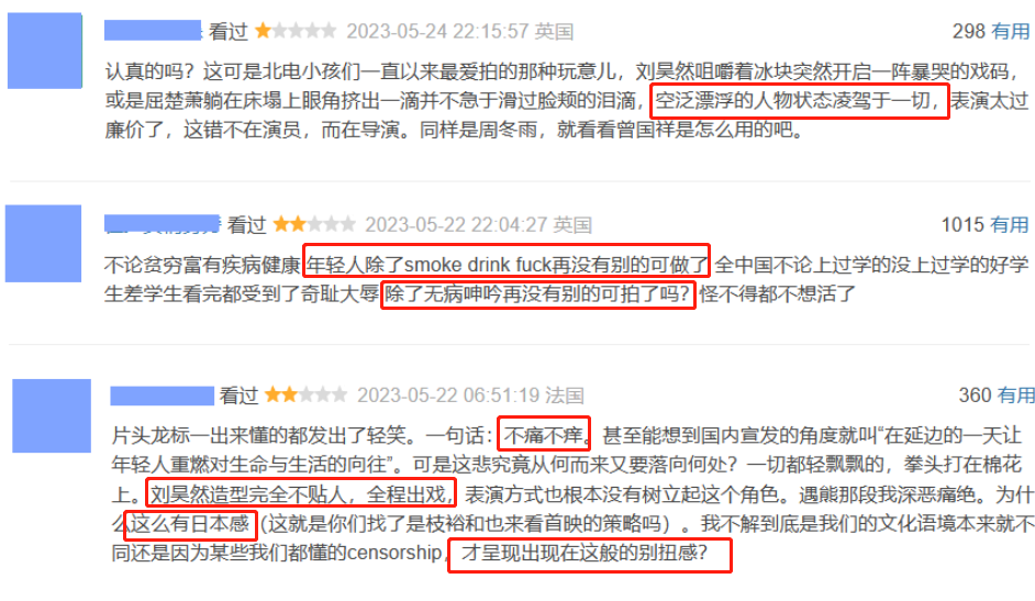 也有部分观众表示自己能与影片中的人物共情,正处于人生岔路口的年轻人或许能够沉浸其中,“钝感”这个词也比较意外地呈现在了大众面前。