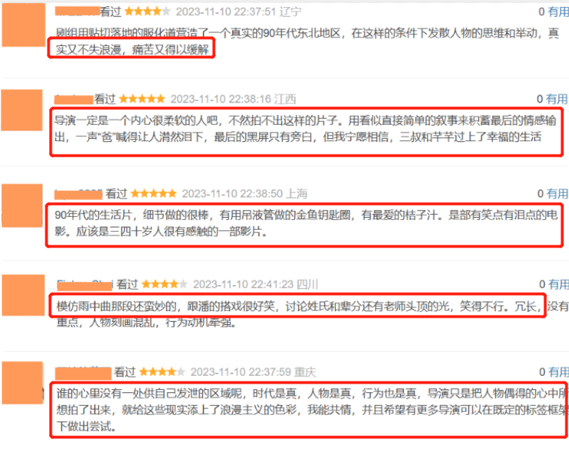 “真实又不失浪漫”、“导演一定是内心很柔软的人”、“巧妙”、“好笑”、“给现实填上浪漫主义色彩”等等。