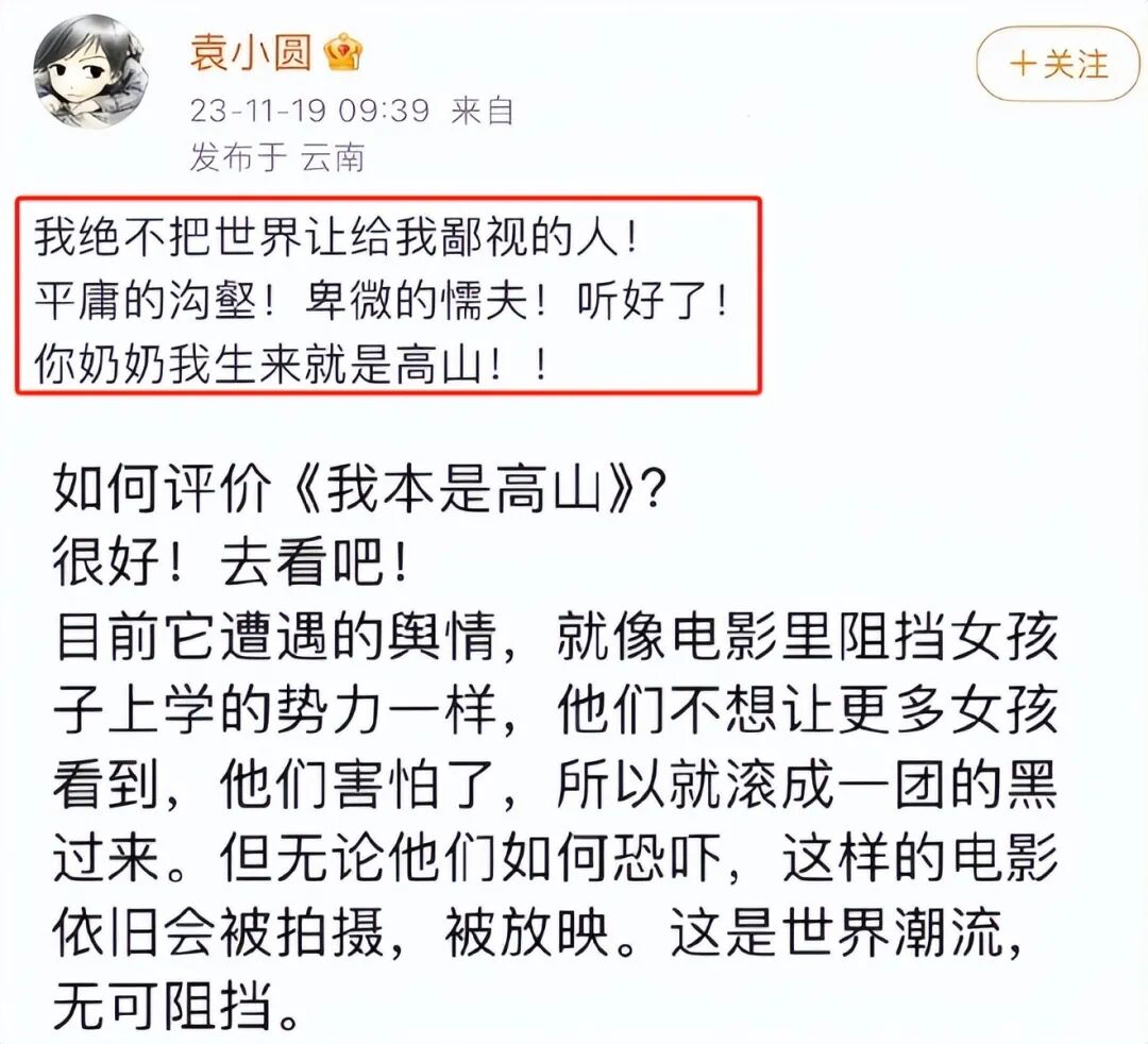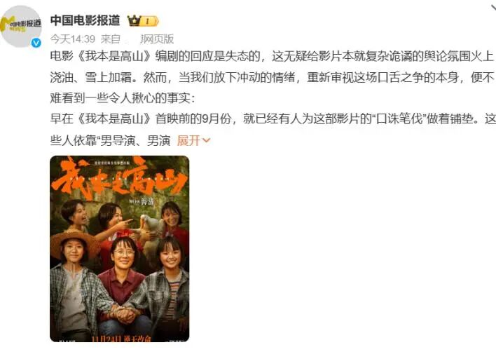 只不过《我本是高山》的主创团队能力有限,在电影本来就被别有用心的人利用后,编剧竟然还能发出这样的言论,实在是不太高明。