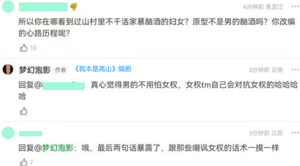 瞬间全网骂声连天,就此,编剧直接破大防,在评论区破口大骂问候别人的父亲,甚至放下狂言“你奶奶我就是高山”。