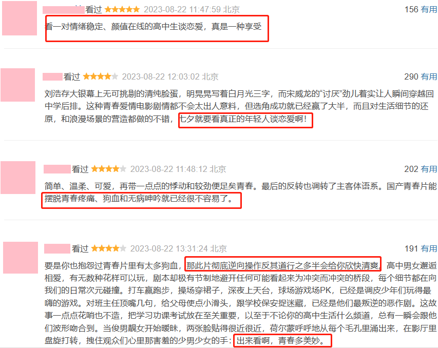 “享受”、“清爽”、“简单温柔”、“青春真的和美妙”等等,就连观众的反馈都如沐春风,看来刘浩存已经将爱情片拍成了爆款。