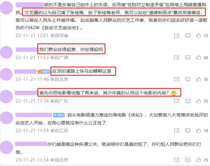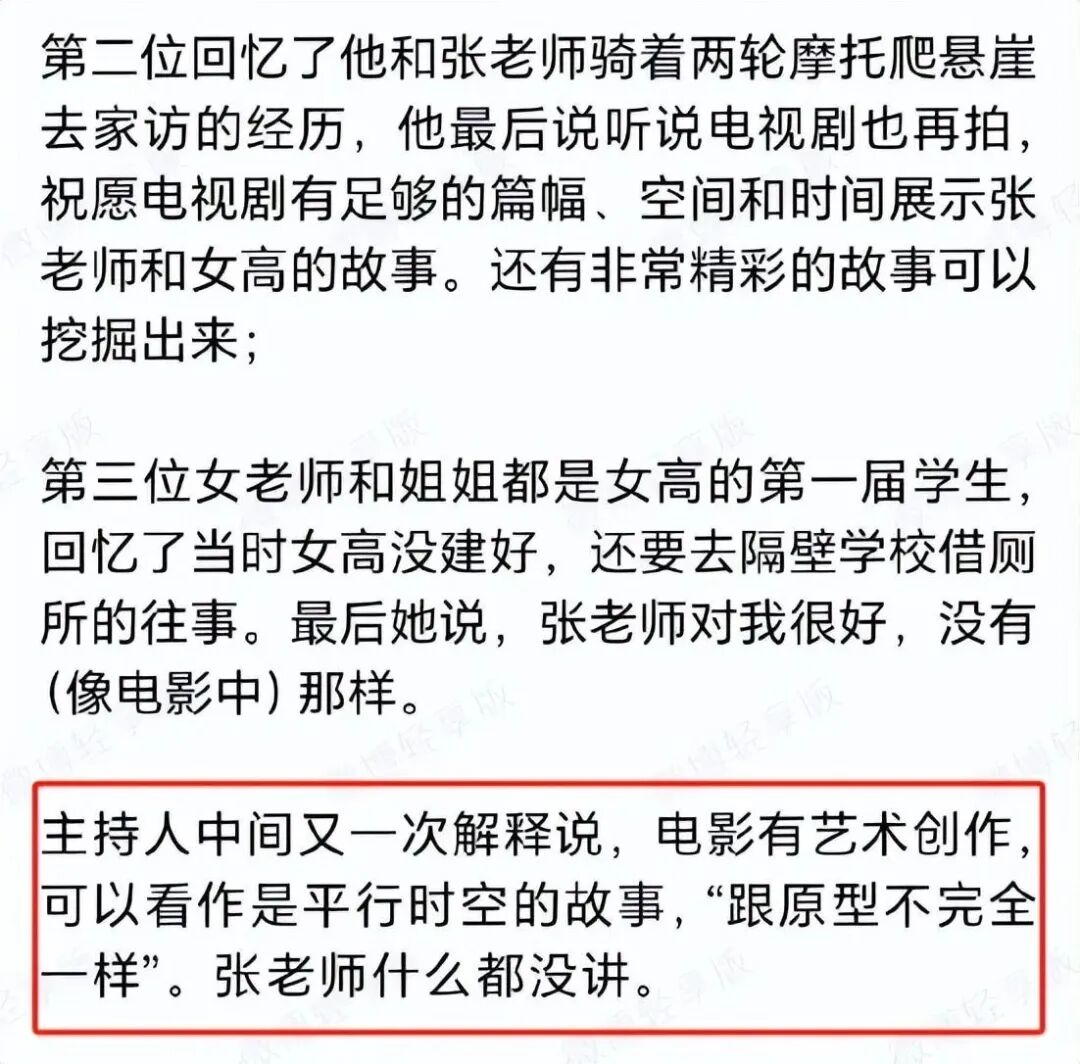 “文艺圈的以为自己演了张桂梅,拍了张桂梅,就可以站在道德制高点上,篡改英雄事迹。”